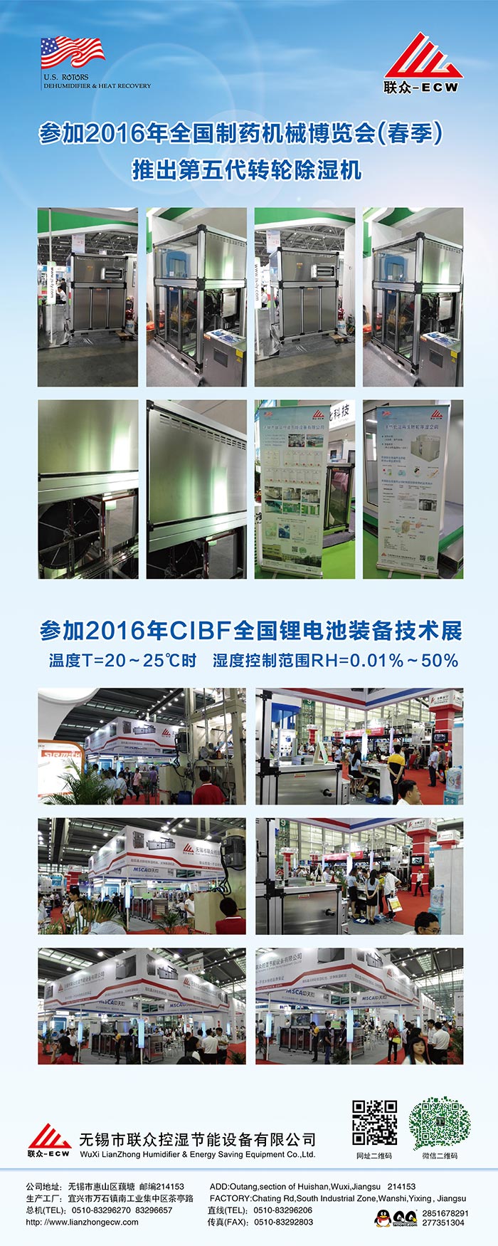 無錫市聯(lián)眾控濕節(jié)能設備有限公司成立于2004年2月,是一家長期致力于把空氣吸附分離技術應用于空氣處理設備的科技型中外合作 企業(yè),主要研發(fā)生產(chǎn)轉(zhuǎn)輪除濕機組、熱泵除濕機組、空氣與空氣熱 能交換回收機組、蒸發(fā)冷卻空調(diào)機組、有機廢氣凈化處理機組等非 標空氣處理設備。隨著生產(chǎn)規(guī)模的不斷壯大和產(chǎn)業(yè)化的精細分工, 聯(lián)眾公司與2011年10月在江蘇省宜興市萬石鎮(zhèn)工業(yè)園茶亭路8號, 一期投資5000萬元,置地25畝、建標準工業(yè)廠房10000平方米和辦 公樓3000平方米,重新注冊成立江蘇聯(lián)眾聯(lián)勝節(jié)能設備有限公司。 企業(yè)領導層決定確立江蘇聯(lián)眾聯(lián)勝公司以研發(fā)生產(chǎn)蒸發(fā)冷卻空調(diào)機 組、有機廢氣凈化處理機組等大型節(jié)能環(huán)保空氣處理設備為主;而無錫聯(lián)眾控濕公司則在無錫繼續(xù)以研發(fā)生產(chǎn)轉(zhuǎn)輪除濕機組、熱泵除濕機組、空氣與空氣熱交器為主。在國內(nèi)暖通空調(diào)工程領域,聯(lián)眾控濕公司研發(fā)各類轉(zhuǎn)輪除濕機的技術能力、生產(chǎn)各類轉(zhuǎn)輪除濕機的 裝備制造工藝水平處于本行業(yè)前沿。